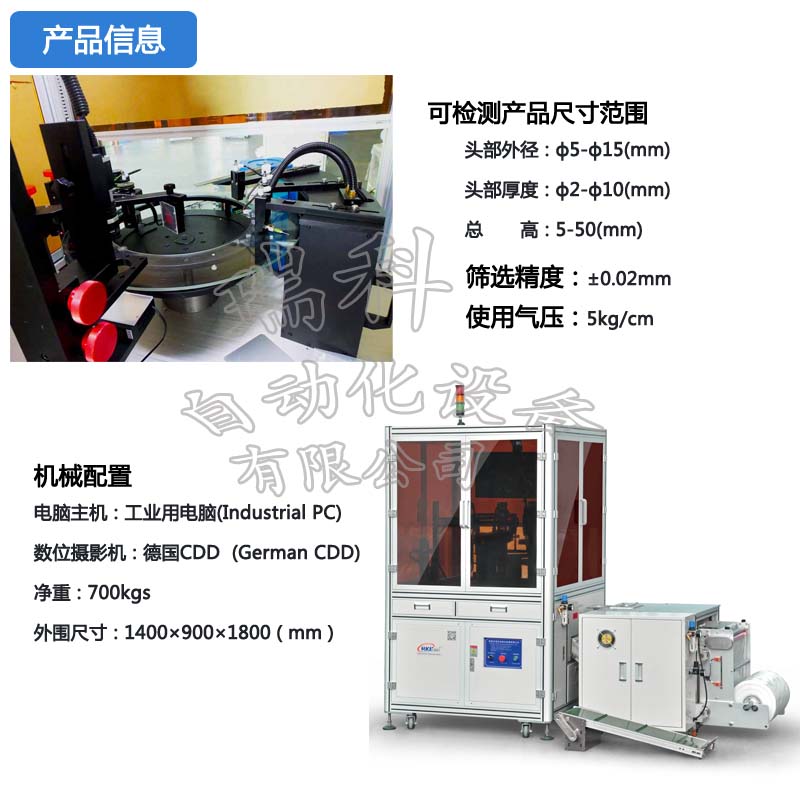 硬體配備包含振動送料機、下料軌道、檢驗平台、計算機係統為一安全、便利,且節省人力成本的自動化設備。分別介紹如下: